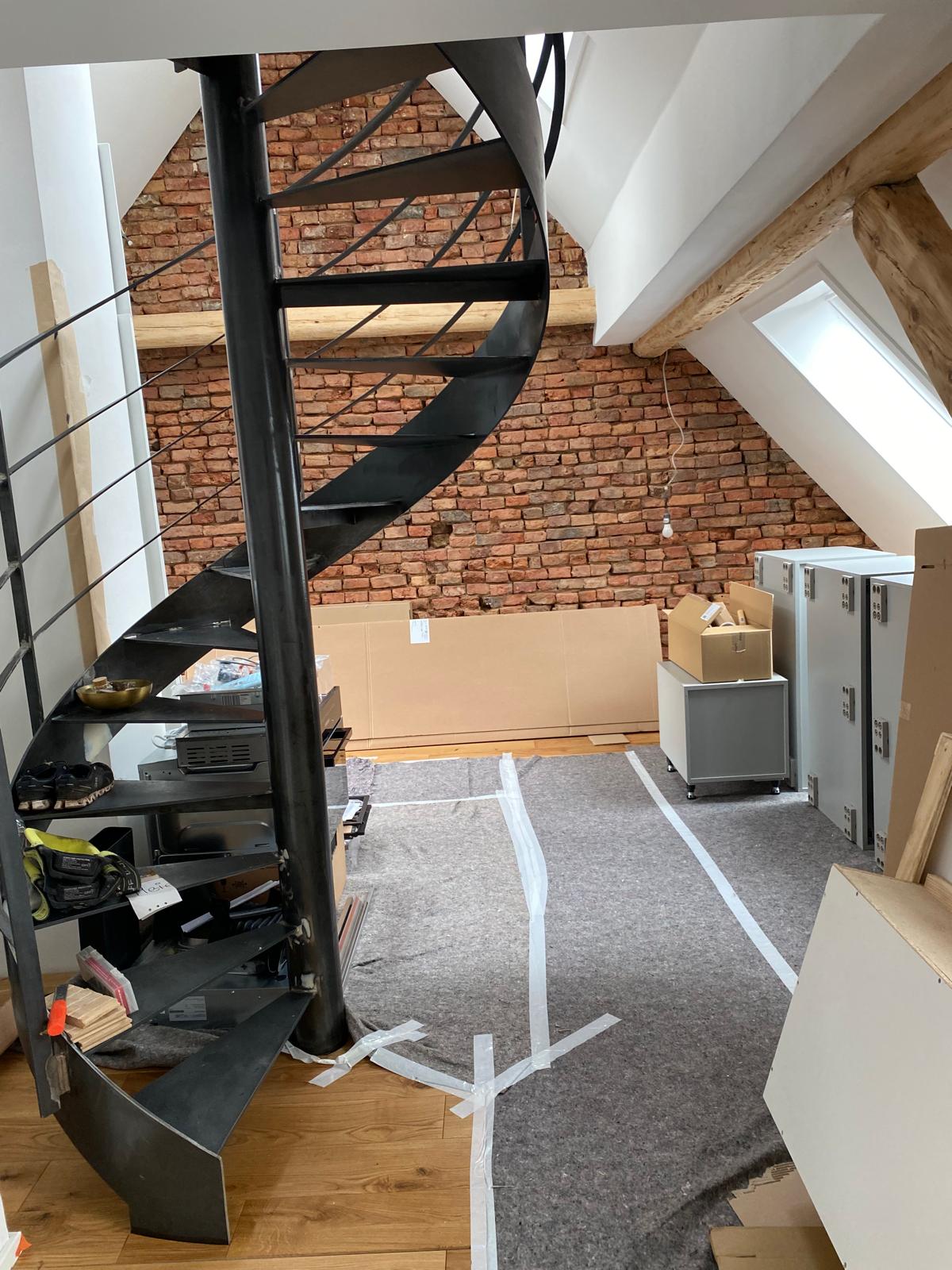 Malerarbeiten an Wendeltreppe sowie Ziegel-Sichtwand Herstellung