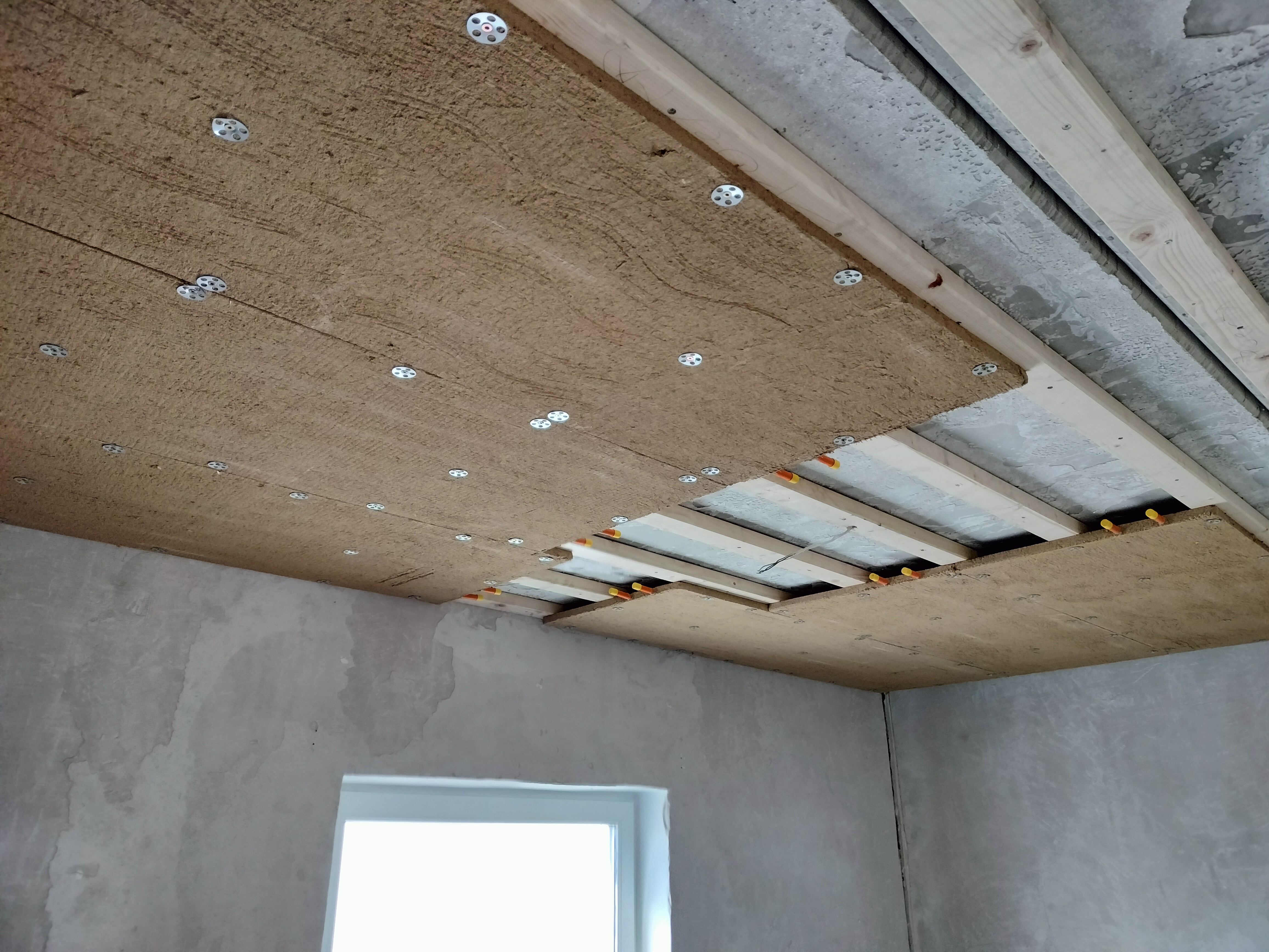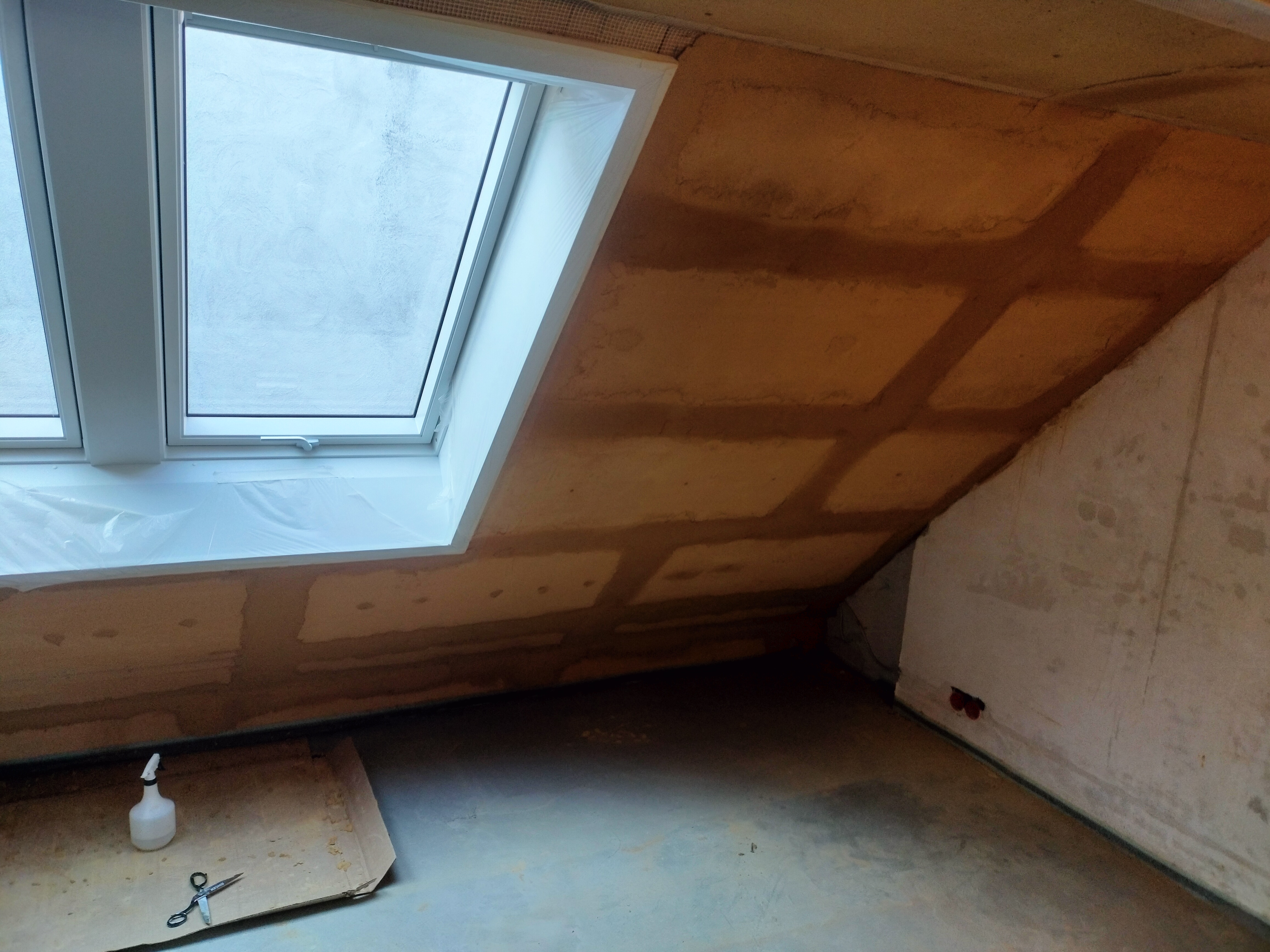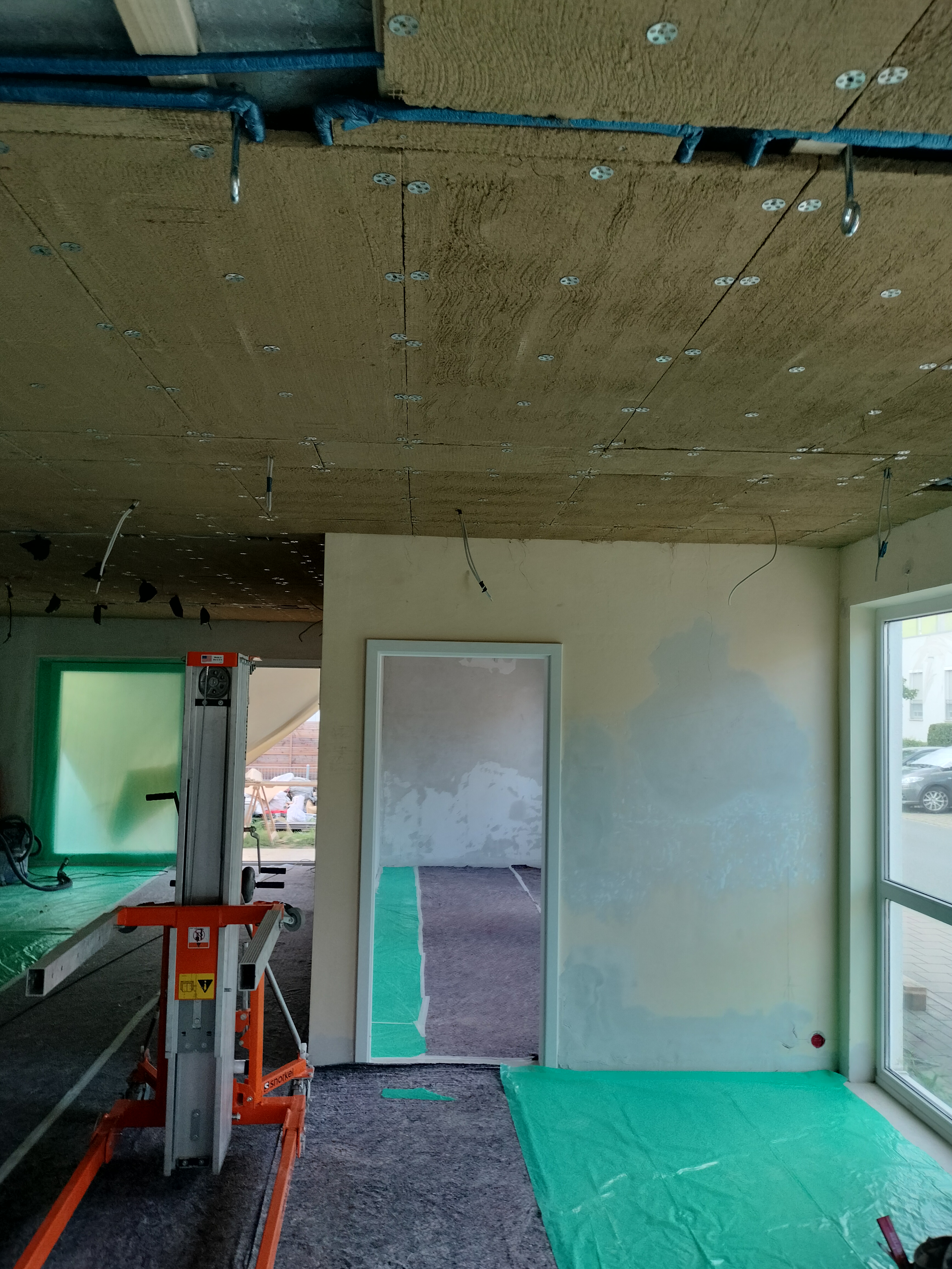 Anbringung und Verspachteln von Lehmplatten Deckenheizung